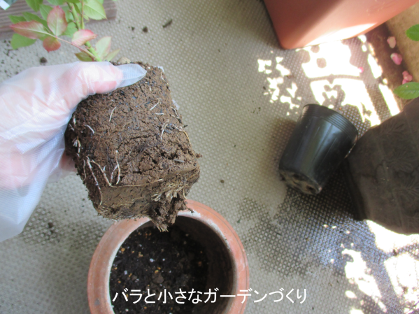 木立ちバラの植え替え方その4、根の整理!