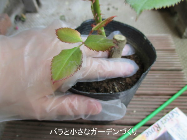 水やりの水に、発根を促すため活力剤(マイローズバラの活力剤、メネデール、HB-101、リキダス、土母など)を混ぜてもいいですね。