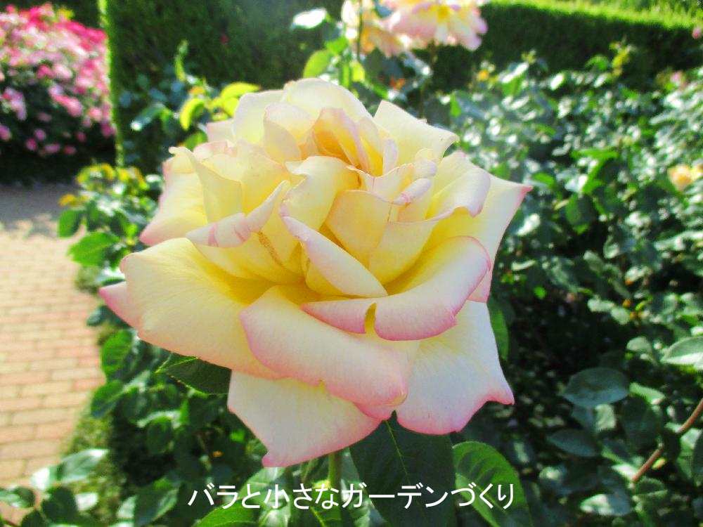 1976年オックスフォード大会(イギリス)で最初の殿堂入りのバラに選ばれたのはピースです。輝くようなクリームイエローにピンクの覆輪がかかった超大輪の花は、悠々とした風格があります。