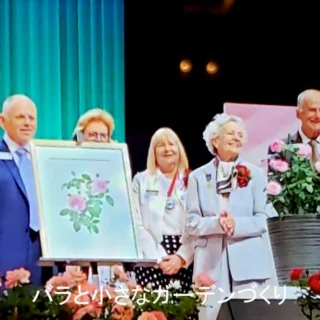 ▲世界バラ会議2025福山大会での殿堂入りバラを発表 写真提供/天女の舞子