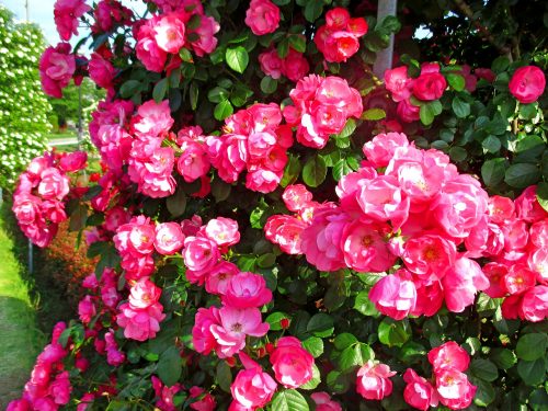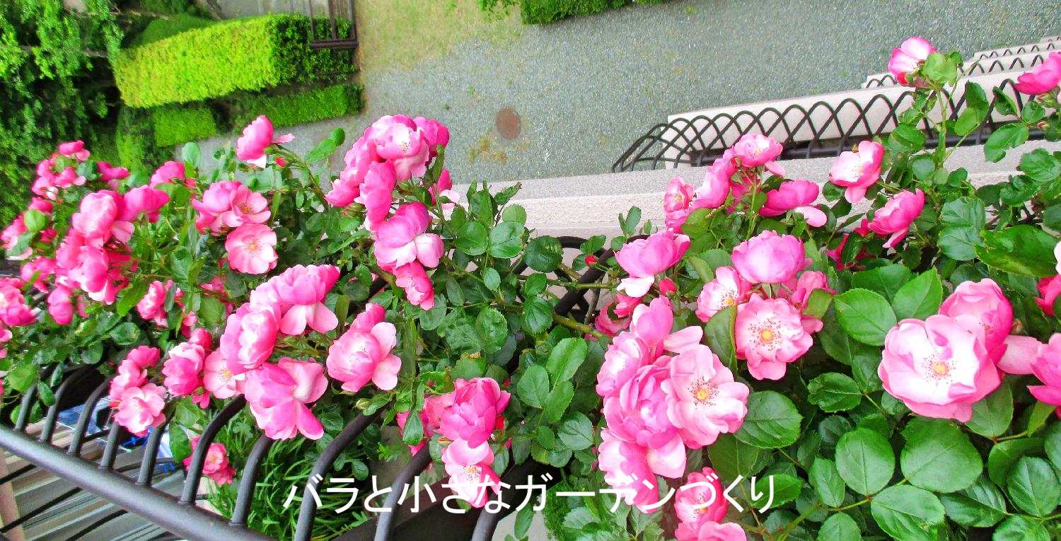濃いピンク色の花をびっしりと房咲きにするバラ、「アンジェラ」を紹介します。もともとフロリバンダ系統なのでブッシュ樹形にしてもよく、枝を長く伸ばしてフェンスなどに誘引しても良い、使い勝手のいいバラです。初心者にもおすすめ!