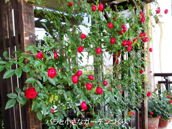 我が家には「紅玉」がありますが、深い軒の一番内側に誘引しているけれど、毎年しっかり咲いてくれます。日当たりの良い環境なら「紅玉」も秋花がまとまって咲きますが、半日陰栽培の我が家では春以外ほとんど咲きません。