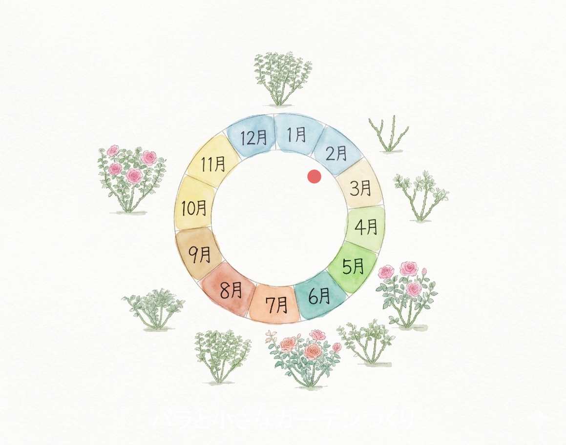 2月のバラは、休眠期の終わりにあたる静かな時期です。「何かやることはあるの?」と気になるかもしれませんが、基本的には特別な作業はありません。