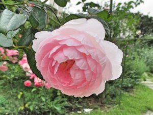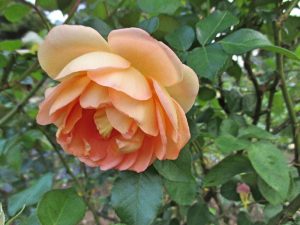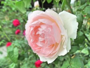 イングリッシュ・ローズはほとんどがシュラブ樹形で、切り詰めてブッシュのように使うこともできれば、大型になるものはつるバラとして使うこともできる、使い勝手のよいバラです。しかもほとんど中香~強香品種なのだから、本当に優れたところの多いバラですね。