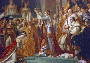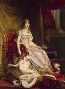 1804年、ナポレオンはフランス皇帝として即位し、ジョゼフィーヌはその皇妃となりました。その様子を描いた、ナポレオン1世の主席画家ジャック=ルイ・ダヴィッドの手による絵画(上に掲出した絵画)は有名ですね。