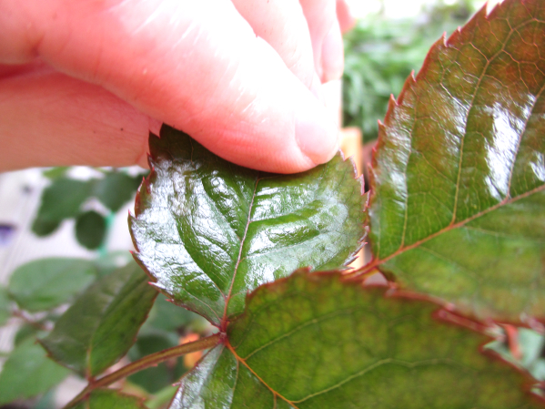 他のバラにも使ってみましたが、爽とか厚い葉のバラではそうはなっていません。
