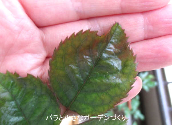 若葉のウドンコ病も、スプレーしてすぐになくなりました。(注:上の写真とは別の葉です)。この葉はかなりひどかったので、何度も念入りに散布しました。