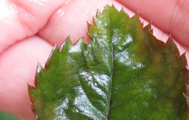 なるほど と、イングリッシュローズを思い起こしてみると、ピカピカな葉ではないですね。