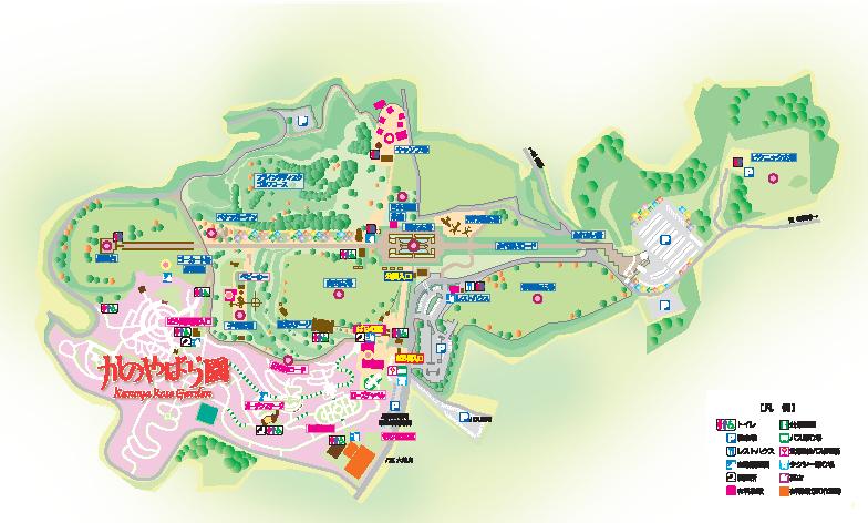 ▲霧島ヶ丘公園の全体図。ピンク色に塗られた部分が「かのやバラ園」