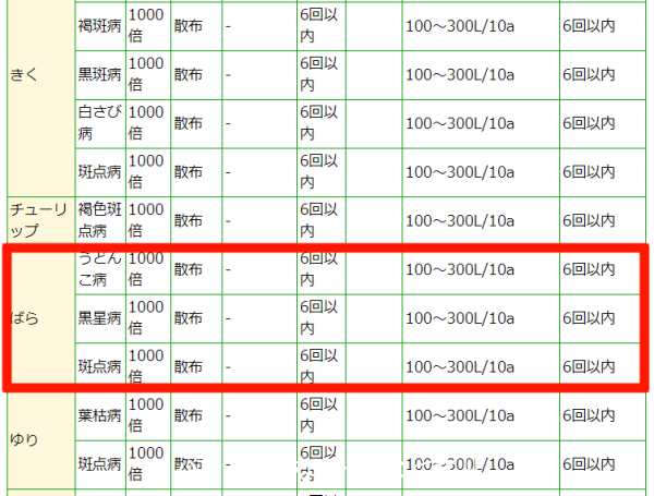 バラの農薬「系統一覧」