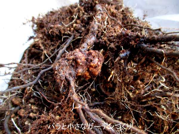 ところがこの株、根頭癌腫病にかかっていました。冬の植え替えで発覚したのですが、根のあちこちにグロテスクな癌腫のコブができていました。