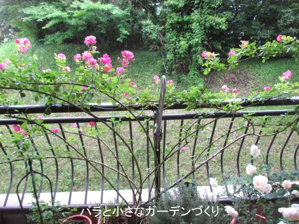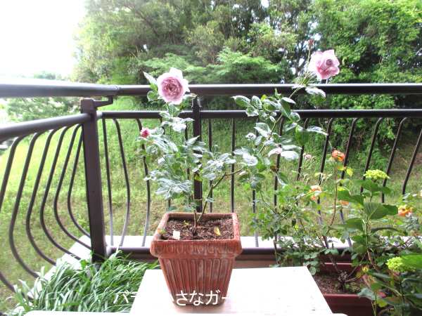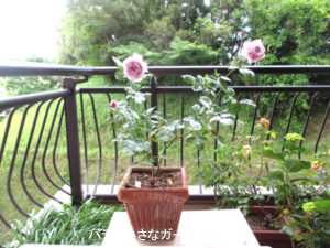 今年の我が家のベランダは、つるバラはイマイチで、木立ちバラはよく咲いたように思います。上の写真はつるバラの「アンジェラ」とイングリッシュローズの「デスデモーナ」。「デスデモーナ」はふわふわ可愛く咲いたけれど、「アンジェラ」の花つきは、例年になく少ないめ。といっても、そこは1季咲きのつるバラです。100輪や200輪はゆうにありますが。
