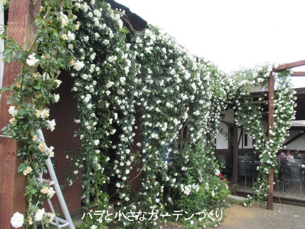 栗の里厚木店のオーナー笹生新氏は、村田兄弟に直接教えを受けた方。なんと、このローズガーデンの手入れは、オーナー自身が手掛けているのです! だからこそ、他では見られないつるバラの表情を引き出した庭になっているのですね!