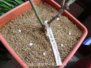 ▲バラが芽吹き始めた3月初旬に芽出し肥を