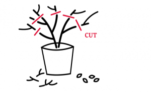 復活手順1、葉をすべて摘み取り、枝先を軽くカット