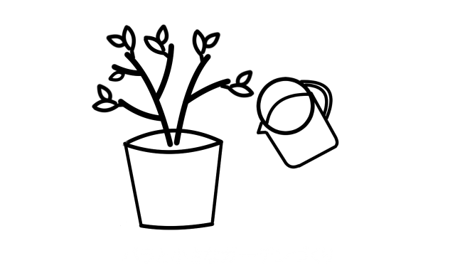 しばらくそのまま水やりを続けていると、新芽が芽吹いてきます。さらに葉が広がってきたら、通常より薄くつくった液体肥料を与えます。