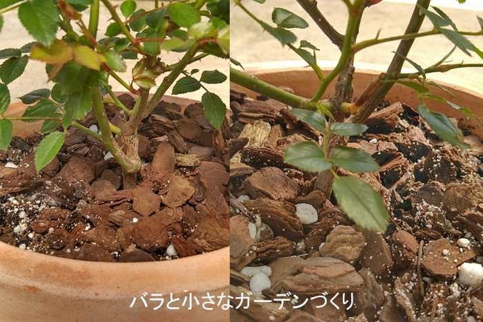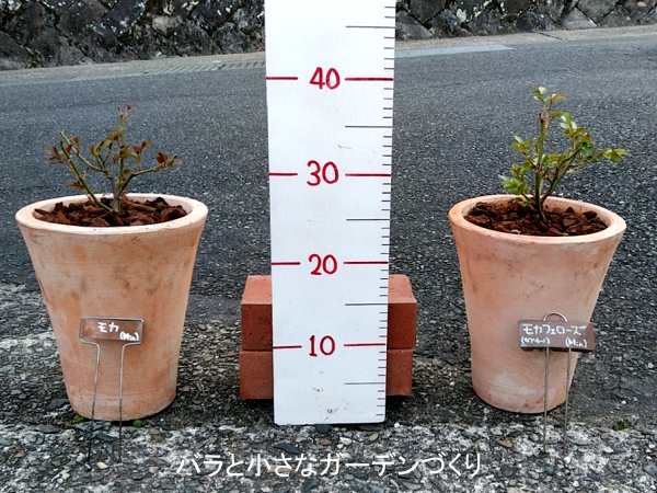 もう1品種の挑戦株はミニバラの「モカ」です。挿し木の寄せ植えから育てたんですが、健気にここまで大きくなってくれました。
