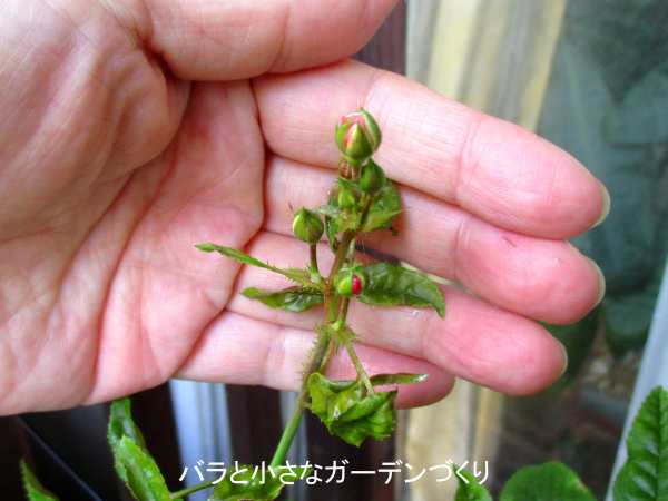 それじゃ「納豆液スプレー」は効果がなかったかというと、そうでもありません。ひとつ上の写真は、じつは内側についた蕾でスプレーが届きにくい場所にあります。