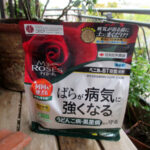 そこでオススメしたいのが、以前紹介したBT粒剤です。これを使うことで、かなりウドンコ病が防げます。BT粒剤はケミカルなものではなく、自然にある菌なので人体に安全です。高さ120cmまでのバラならBT粒剤だけでウドンコ病が防げるように思いますが、それでも発生してしまうほどウドンコ病に弱い品種もしくは、120cmを越えるシュラブやつるバラには納豆菌がとても有用です。