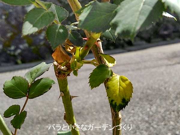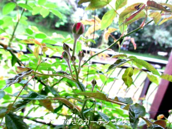 軒のある環境では、ほとんどのバラにウドンコ病が出ます。雨が当たればウドンコ病はあまり出ないんですが、出窓だと発生するでしょうねー!