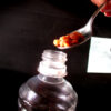 プラスチックスプーンの持ち手を裏返して「アビオンE」のボトルに入れ、少量を取り出します。少量取り出せればいいので、必ずしもプラスチックスプーンでなくても構いません。