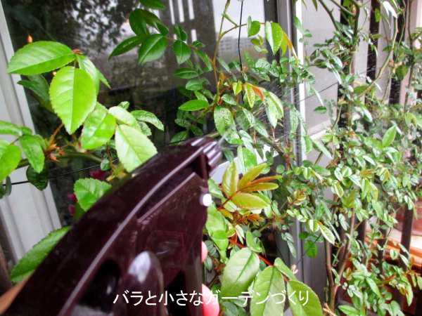 ウドンコ病にも効果があるとうたっているハンドスプレー薬剤ありますが、正直言って効きません(汗)。しかも、出窓やベランダなど、人の近くで育てているバラに、農薬を使うのはやはりためらわれます。