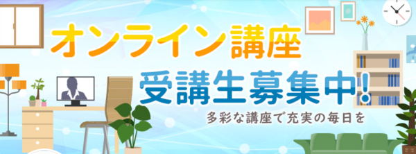 基本は、それぞれの教室に決められた時間に足を運んで受講するスタイルですが、オンライン講座も設けられています。オンライン講座なら、PCさえあれば教室に足を運ぶことなく受講できてとても便利ですね。
