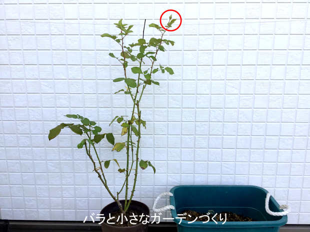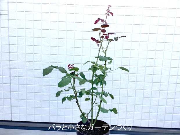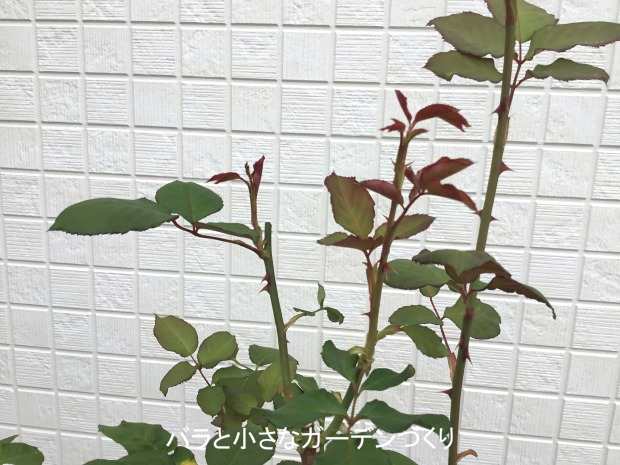 前回9月3日の夏剪定の後、9月前半に蕾が2つ上がってしまったのでピンチで取り除いてあります。新芽がぐんと伸びて現在の樹高は90cm。