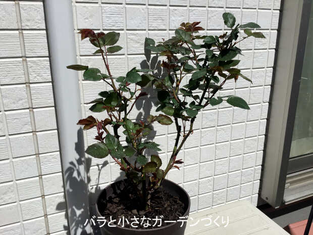 親株は地植えにしていて花は雨ざらしのため、なかなかキレイになりませんが、強くて育てやすいバラです。鉢植えなら花の間、雨の当たらないところに移動できるので、キレイに咲かせられそうです。