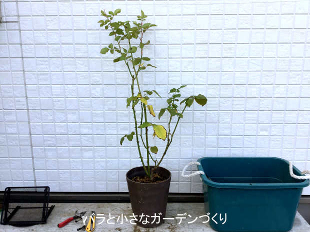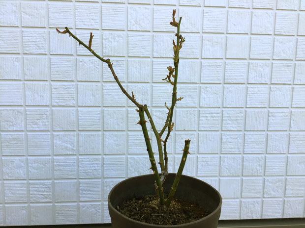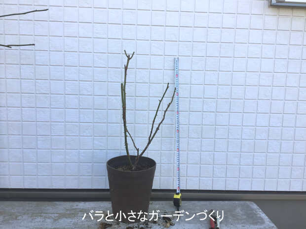今回は剪定をせず、蕾をカットしただけ。葉もそのままです。2月に入ってから冬剪定をします。それまで枯らさないていどの水やりを続けます。