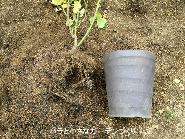 オリジナルブレンドの用土と有機質肥料で同じ土に植え直して、用土替えは完了です。この後、たっぷり水やりしておきました。