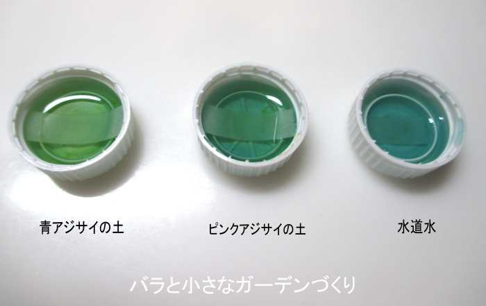 ▲青アジサイPH5.7 ピンクアジサイPH6.4 水道水PH7.5