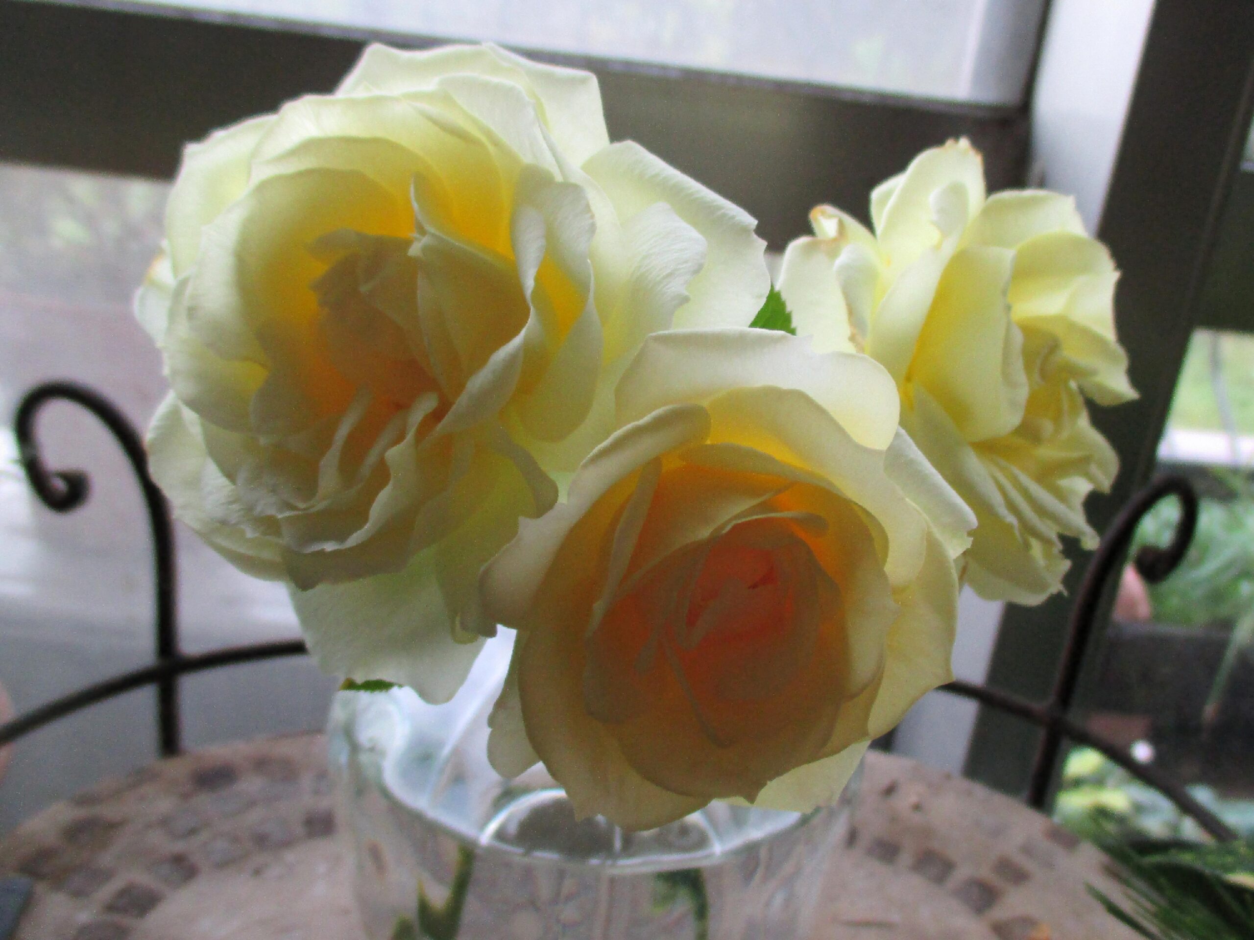 気温の高い6~9月ごろははっきりした黄色になりますが、気温が低くなると外側にいくほど白みを帯びる透明感のある優しいクリーム・イエローの花になります。さすがデンマーク生まれのバラだけあって、寒さにはとても強いようです。