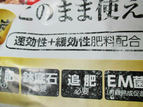 肥料が入っているかいないかは、とても重要なポイントなので、表示のしかたが不親切でよく分からないときには、その培養土は選ばない方がいいです。他の商品に比べて、あまりに安い培養土も避けた方がいいですよ!