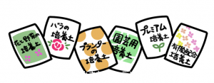 培養土の中でも、「花と野菜の培養土」「バラの培養土」「プランターの培養土」「園芸用培養土」「プレミアム培養土」「有機質配合培養土」などなど。このあたりは問題なく使えます。