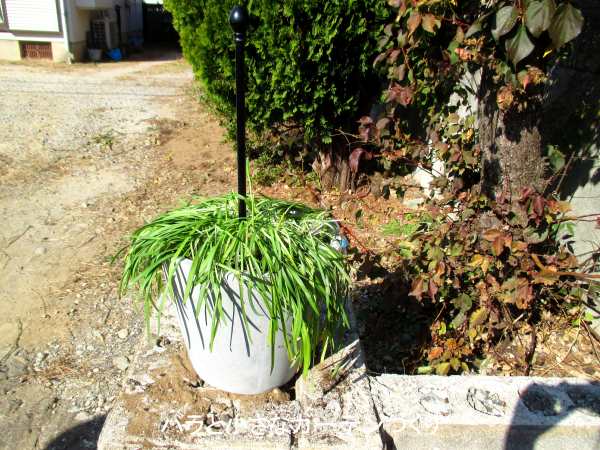 コンクリート色の大鉢に植えたのはアガパンサスです。これも我が家のベランダにあったもので、増えすぎて困ってしまったので持ってきました。耐寒性も確認済みだし、なにしろ鉢植えでも水やり不要。さらに毎年咲いてくれる優秀なお花です^^