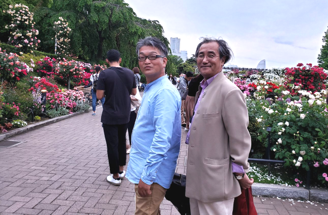 イベントの帰りに、大さん橋ホールのすぐ近くの「山下公園のバラ園」に寄ったら、偶然、小山内さんと玉置一裕さんにバッタリ! 小山内さんと玉置さんは、会場でもとても中良さそうだったんですよね! 思わず写真を撮らせていただきました。