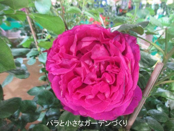 このバラ(「ローズポンパドゥール」)はフランスのデルバール社がつくったバラなんですが、選んだのは日本人。大野耕生さんです。日本に紹介するバラの最終選抜で、デルバールの人が、これいいよ、これもいいよって次々に勧めてるのに、耕生さんもう10個も前のバラになるこのバラをじーっと見てましたからね。発売から10年くらいたちますが、いまだに日本でよく売れているそうです。