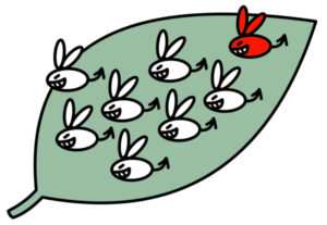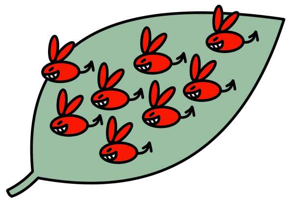 殺虫剤Aは赤いアブラムシに効かないので、いくら散布してもどんどん増えていきます。