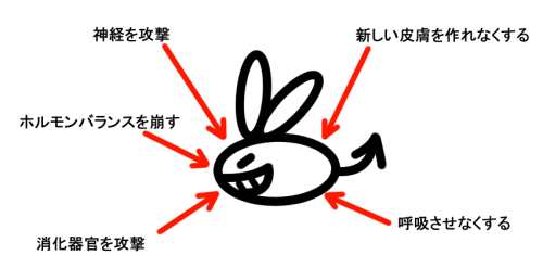 「神経を攻撃するタイプ」、「ホルモンバランスを崩すタイプ」、「消化器官を攻撃するタイプ」、「新しい皮膚を作れなくさせるタイプ」、「呼吸させなくするタイプ」の5タイプです。