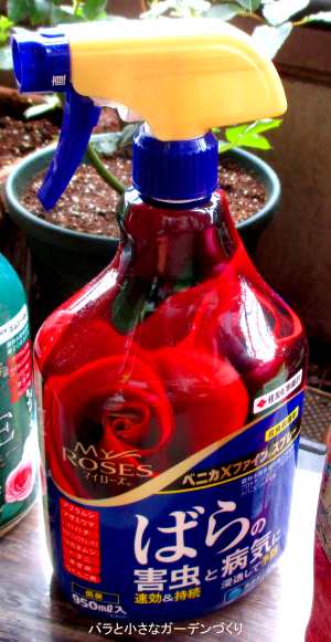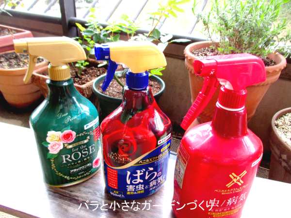 わたしも、ちょうどその3種類のハンドスプレー農薬を使っているわ。バラには「ローテーション散布」した方がいいって聞いたから、アレを使ったら次はコレって交互に──。まぁ、詳しくは分からないんだけどね。