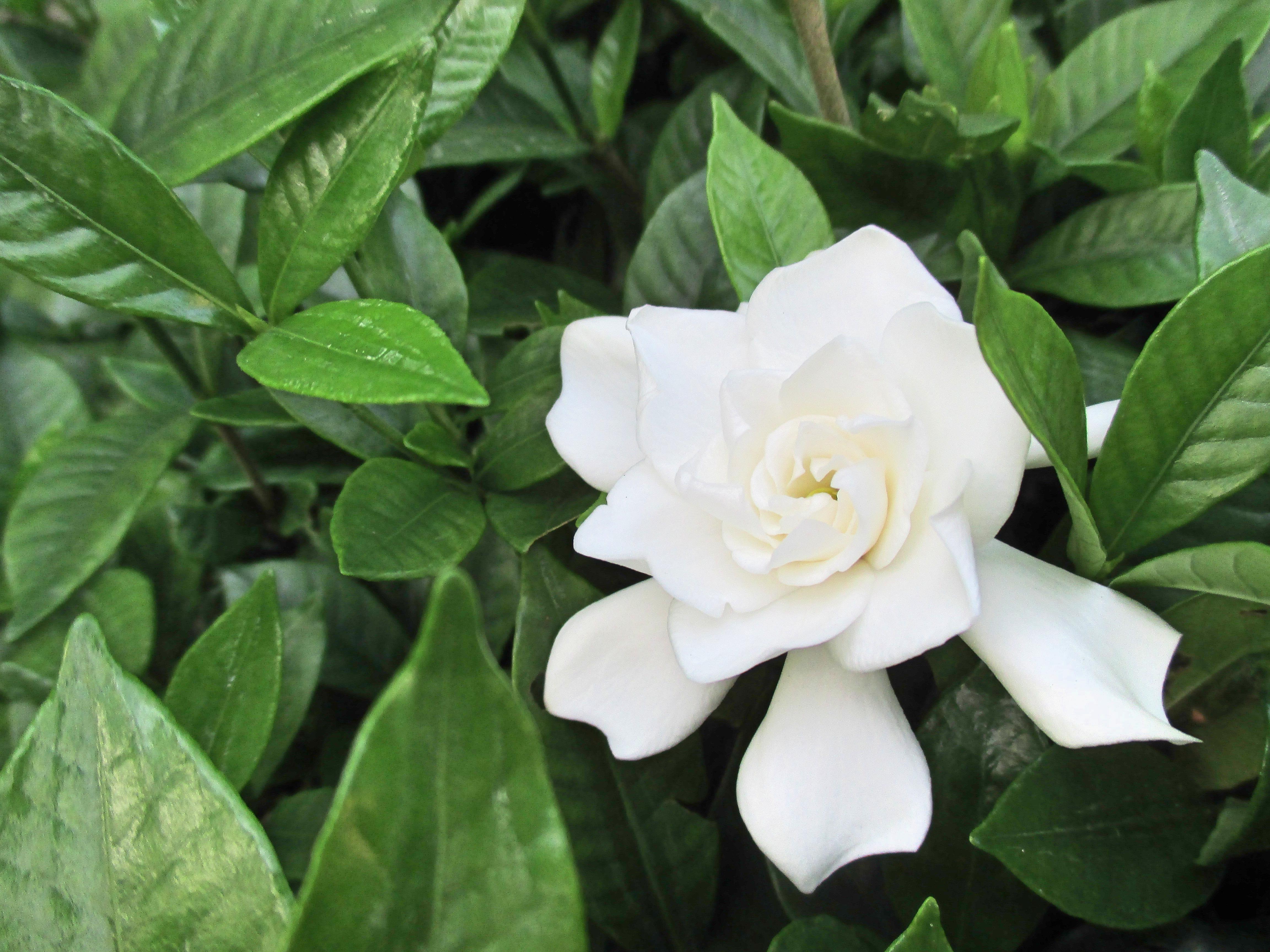 こちらは咲き残りのクチナシです。細い雨の中、甘く香っていました。