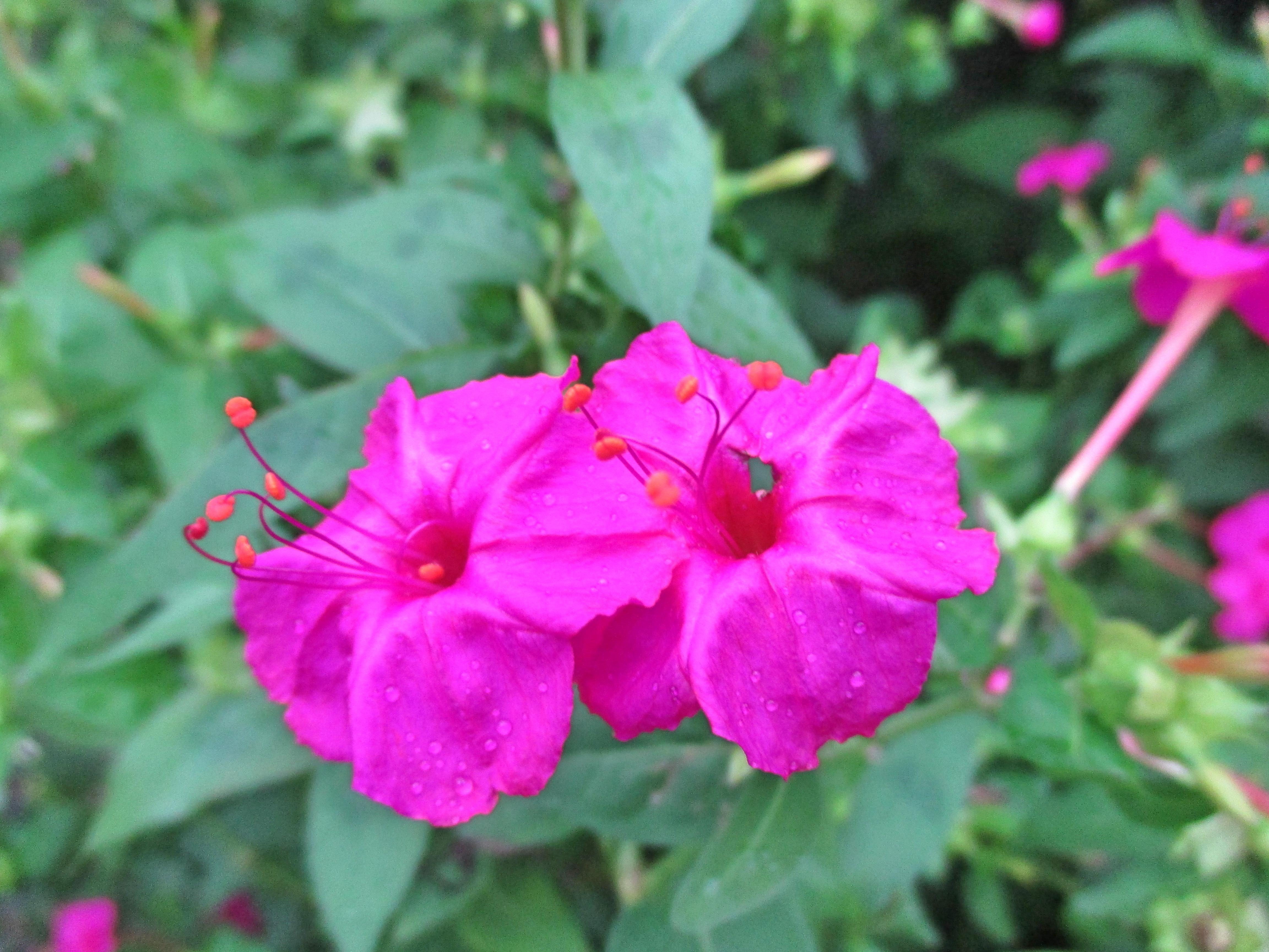 辺りには、こぼれ種で増えたらしいオシロイバナがいい香りで咲いています。夕方に咲き始めるのでユウゲショウ(夕化粧)とも呼ばれるんだとか。