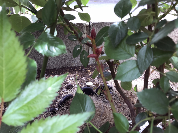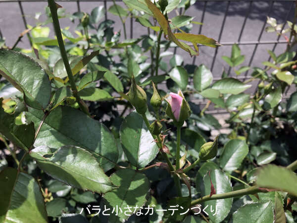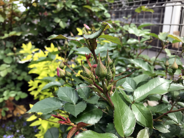 やはり左の株の方が樹勢がよく、蕾の数も多いです。右の株にも少ないながら蕾があるので、咲いて枝をしっかりさせてほしいと思っています。