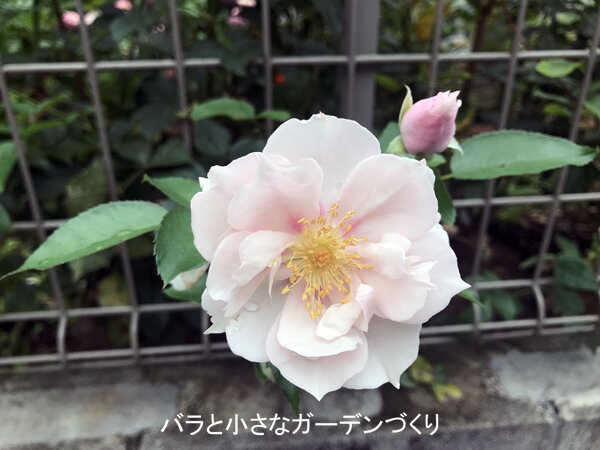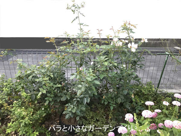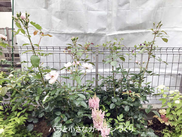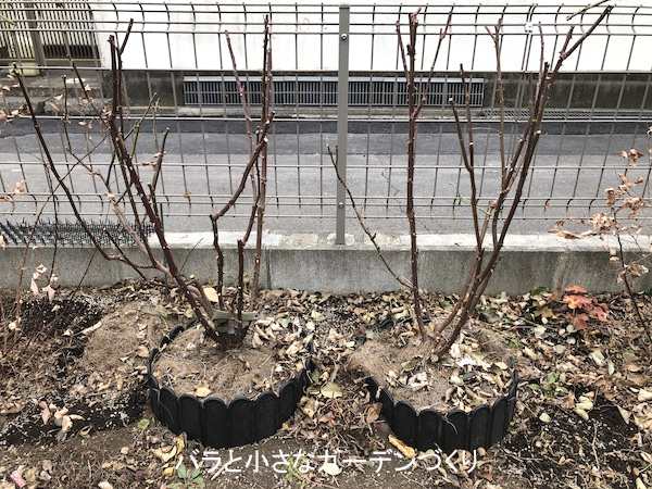 新苗から2年目なので、しっかり根を張り健康に育てること。2株並べて植えてあるので、大きなシュラブのように仕立てられたらいいなと思っています。