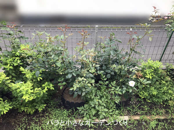今年の目標は「しっかり根を張り、健康に育てること」と「2株植えで、大きなシュラブのように育てること」でした。