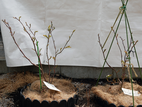 やつやの若葉が茂ってきました。現在の樹高は左が60cm、右が50cmです。2株とも病気は出ていません。