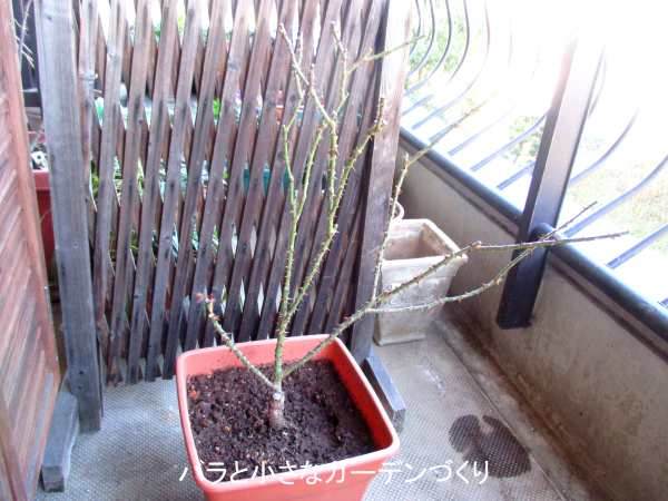 赤い新芽が確認できるようになった2月中旬に「アレゴリー」の冬剪定をしました。