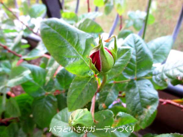 一番大きな蕾はガク割れが始まりました。花弁数の多い花なので、開花まで少しかかるかな? それとも、このまま早咲きするのかな?