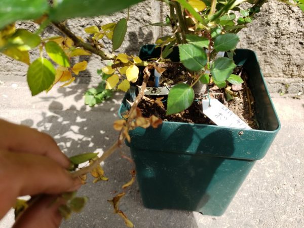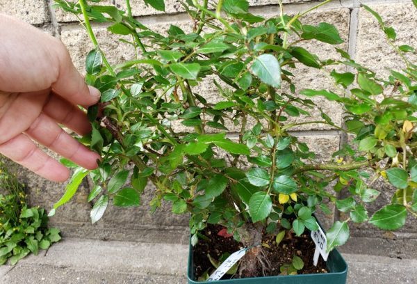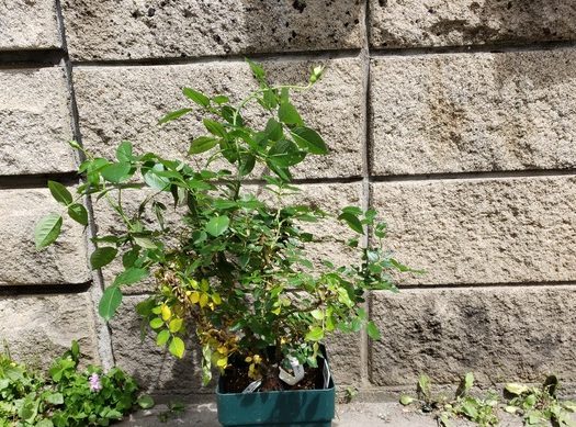 昨年、中苗から育てたボレロは、約10ヵ月たって枯れたり茶色くなっている枝が数本あり、全体に弱々しい感じです。昨年の自分の管理を反省しつつ、今回の大苗は元気に育てたいと思います。